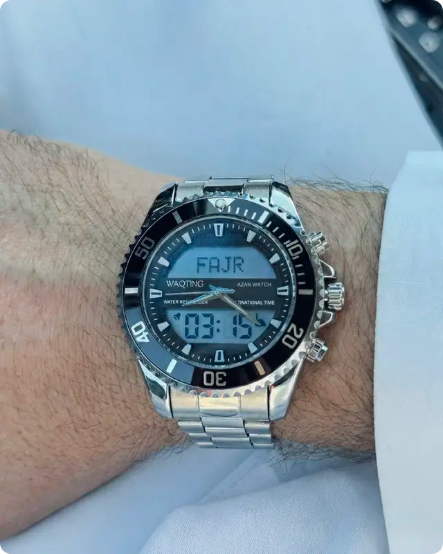 Designed specifically for the modern Muslim, it features automatic worldwide prayer times, a precise Qibla direction finder, and a dual Hijri/Gregorian calendar. With thoughtful extras like a Quran bookmark and a personalised name display, the Sahara keeps you connected to your faith.